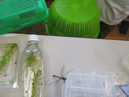 そこで、静かに教室に入ってみると、孵化したばかりでまだ飛ぶことができないトンボの姿をみることができました。