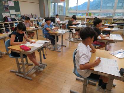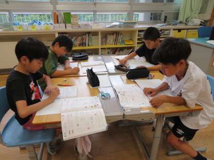 小数では、1より小さい数がでてきます。1より小さい数も10進法で成り立っていますが、なかなかイメージできないときがあります。グループ内で教え合いながらがんばろうとしています。