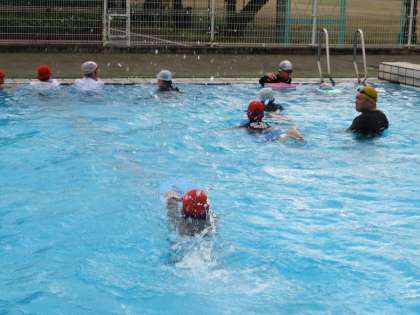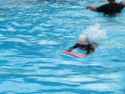 始めは、大プールの横を何度も泳ぎましたが、後半には大プールの縦の方にも挑戦しました。