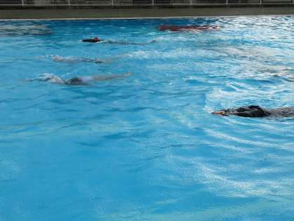 クジラ・イルカチームは、クロールを中心に泳ぐ距離を伸ばすように何本も泳いでいました。きれいなフォームで力強く泳ぐ子供たちです。