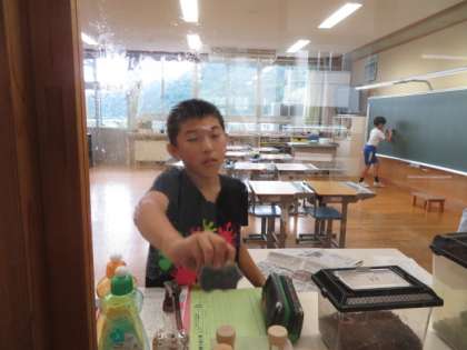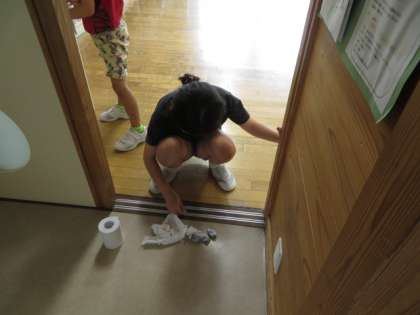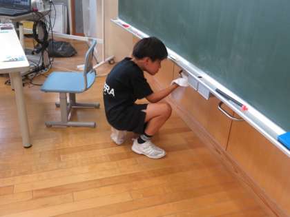 いつも通り丁寧に清掃を行い、さらに教室の出入り口のドアレールのごみ取りや窓ふき、黒板の溝等、細かいところに目を行き届かせてがんばっていました。