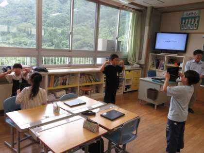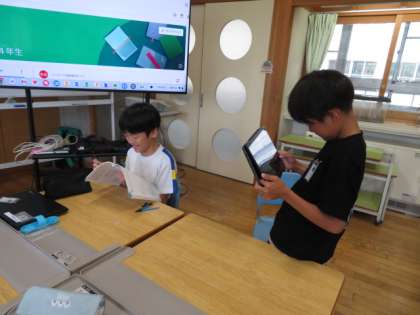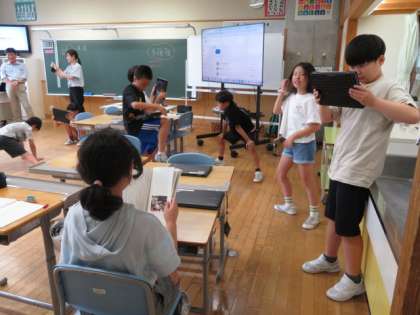 最後に、一人ずつ、写真に寄せる思いや友達の姿について語り合いました。ゲストティーチャーの方からは、一人ずつに講評をいただきました。アングルや人物の配置、小物の使い方、撮り方の工夫等、何気なく撮った写真のよいところを子供たちが意識できるようなアドバイスをいただきました。子供たちは、コミュニケーション力の大切さも学びました。