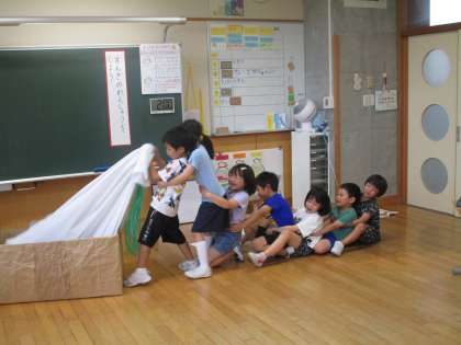 国語科で「大きなかぶ」の学習をしました。今日は音読劇の様子を動画に撮る日だったのですが、急遽2・3年生が見に来てくれることになりました。今年度、教科書は改訂されたのですが、「大きなかぶ」は、ずっと1年生の国語の教科書に載っているお話です。今の2・3年生も「ぼくはおじいさん役だったよ」などと懐かしそうでした。