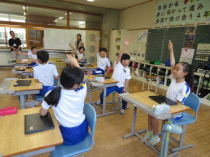 今日の最初の課題は、「アップとルーズクイズ」です。昨日教室内で教職員が撮った写真を、ゲストティーチャーの方がクイズとして提示してくださいました。