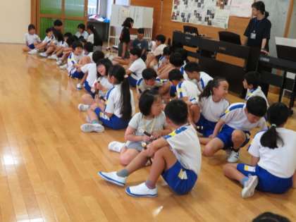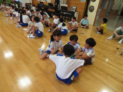 決まった場所での挨拶だけでなく、必要な場でしっかりと挨拶ができようになれば、挨拶名人の碧っ子。自分の挨拶の振り返りを、近くの人と話し合いました。子供たちは、学年を問わず近くの子供たちと真剣に話し合っていました。