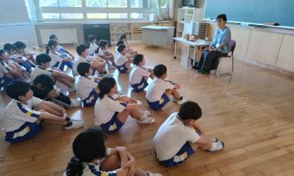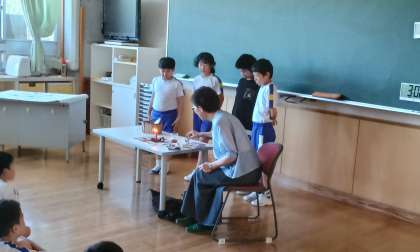 今日は2学期初めての読み語りでした。今回のお話は、グリム童話の「ルンペンシュティルツヒェン」でした。ボランティアの方を真剣に見つめながら聞き入り、初めて聞くお話に目を輝かせていました。