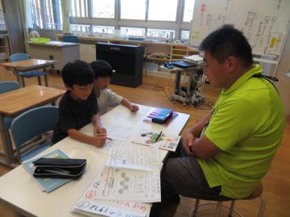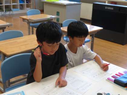 おはじきを操作しながら図に表したり、話し合ったりしながら集中して学習を進めていました。