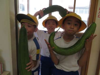 9月10日(火) 4年生 理科 公開日 2024/09/10 更新日 2024/09/10 4年生の部屋 ヘチマの観察のため畑に行った4年生。 畑からの帰りに校長室と職員室に立ち寄って、ヘチマを見せてくれました。 大きなヘチマの収穫に大喜びです。