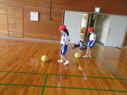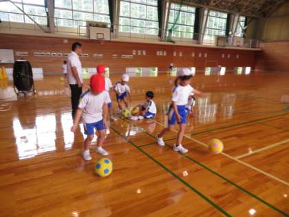 今日は、ボールけり遊びに入るためのボール慣れの時間でした。