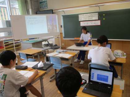社会科の学習で、鹿児島県の水産業についてそれぞれが調べて、プレゼンテーションソフトにまとめました。一人一人が興味をもって調べたことに少しずつ違いがあったり、共通していたことがあったりして、発表を興味深く聴き合う5年生でした。