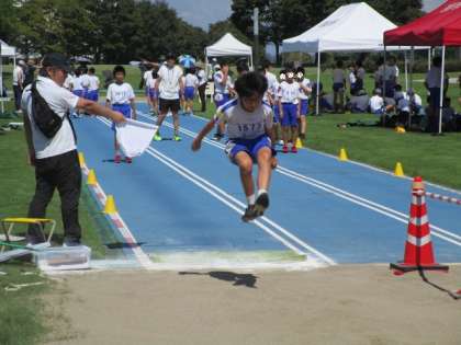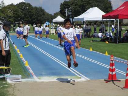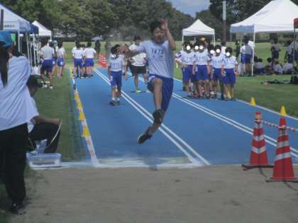 男子走り幅跳びの様子です。全力を出して高く跳びました。「なかなか上手に跳べたと思いますよ!」と満足した様子で報告してくれました。