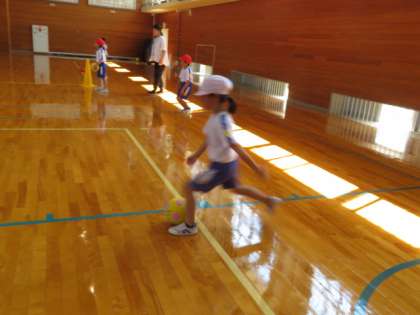 今日は、対面の友達と交互に蹴り合いました。まっすぐに蹴るのは難しいのですが、一生懸命に取り組んでいました。