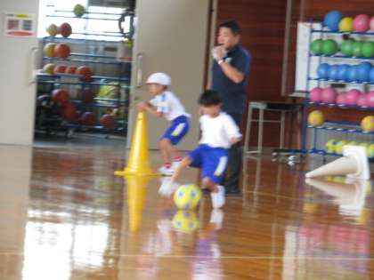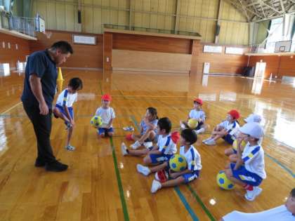 高く蹴り上げることを教わったり、蹴る足の部位を確認したりしながら、楽しく取り組みました。