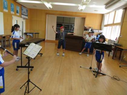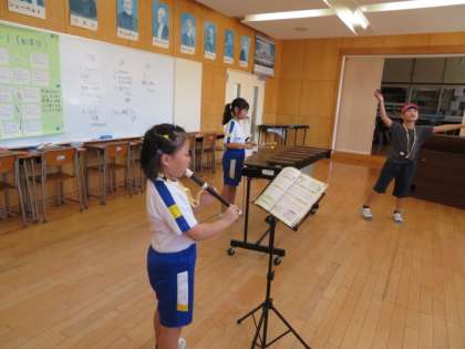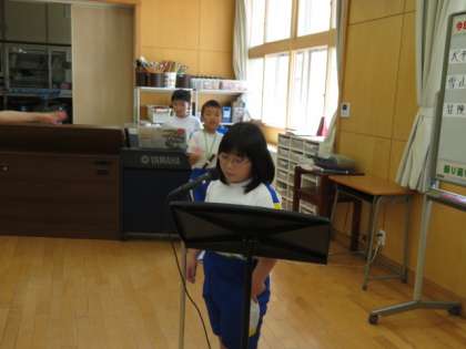 次は、「ゆかいな木きん」の演奏と歌です。マイクを使って堂々と歌う子、演奏しながらダンスをする子もいます。自信あふれる発表に、大きな拍手をおくりました。