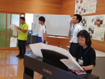 今日のパワーアップタイムは、三部合唱「越えてゆけ」の全体練習を行いました。