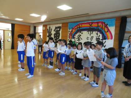 この曲は、学習発表会の時に小中合同合唱として披露します。明日は、小中合同練習です。