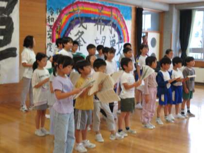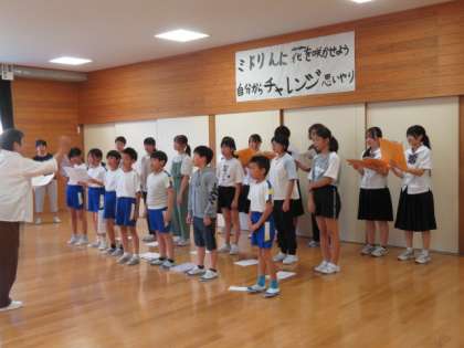 ゲストティーチャーの方々が全体練習前に歌声を披露してくださいました。子供たちは、3名のゲストティーチャーの美しいハーモニーに聴き惚れていました。その姿と歌声に近付きたいと願い、ひたむきに練習しました。