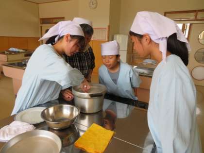 今日は、鍋でお米を炊きました。上手に炊けた5年生。自信を深めることができたようです。