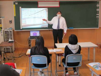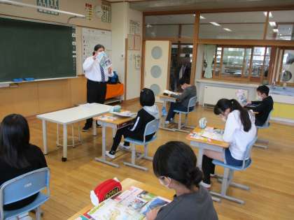 新しい外国語の教科書を使ってチャンツを歌ったり、アルファベットの発音をしたりしました。