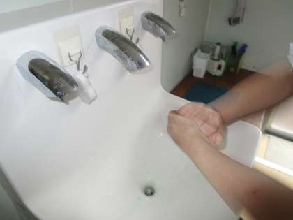 ・ トイレの後(給食室へ入ってから更にもう一度)
