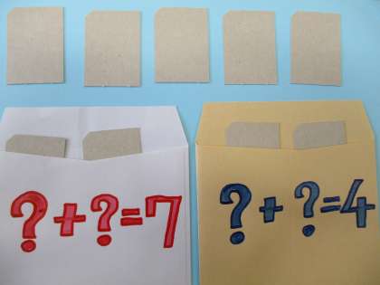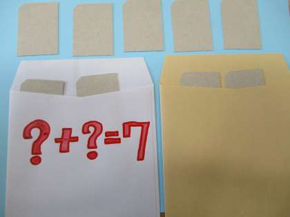 ちゃ色いふうとうは カードの すう字をたすと 4になります。