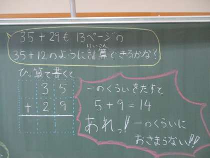 4月20日(月) 2年生のみなさんへ3 公開日 2020/04/20 更新日 2020/04/20 2年生の部屋 35+29も きょうかしょ13ページの35+12のように計算できますか・・・ あれ?なにかがちがいますね。
