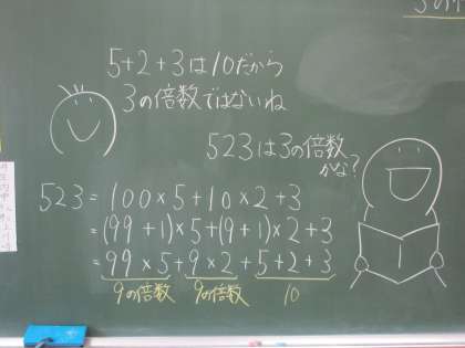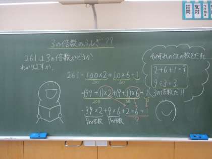 さて、261が3の倍数かどうか調べる方法は見つけられたでしょうか。数の性質を調べてみるのもいいですね。