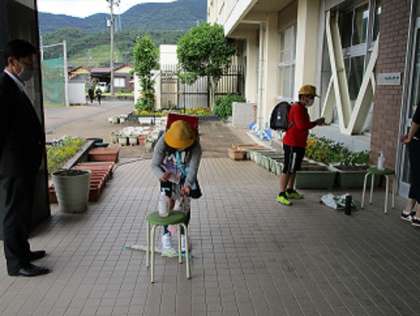 感染予防のために、登校して、まず子供たちがすることは・・・。
