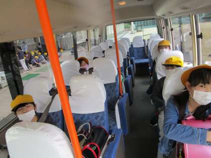 どうしても密になりやすいスクールバスですが、窓を開けたり隣の人との間を開けたりなど工夫をしています。また、バスの中ではおしゃべりしないこともお約束になっています。