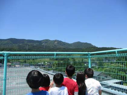 今日は屋上に行って、友達の家を見付けたり、自分の家の方向を教え合ったりしました。
