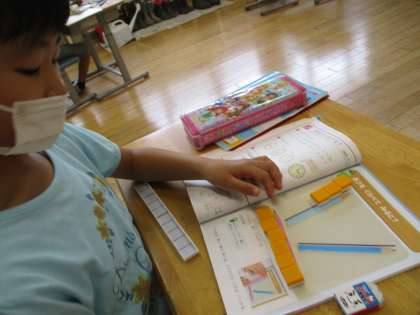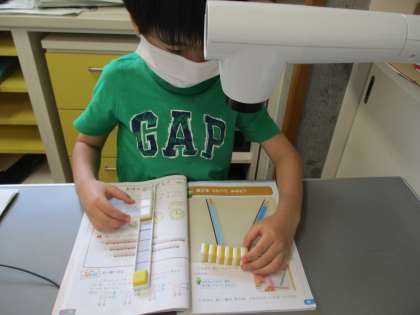 6月5日(金) 2年生 算数科「長さをはかってあらわそう」 公開日 2020/06/05 更新日 2020/06/05 2年生の部屋 鉛筆の長さはどれだけかを 表す方法を考えました。 数ブロックや消しゴムを使って考えていました。
