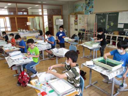 6月5日(金) 4年生 絵の具でゆめもよう(1)
