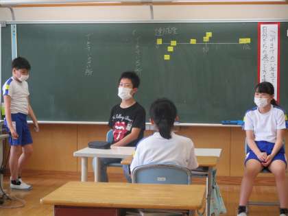 学級活動の時間に、6年生としてこれまでどれだけの役割を果たすことができているか振り返る時間を設けました。一人一人にできていること、できていないことがありました。できていることはどうやって伸ばしていくか、できていないことはどうやったらできるようになるかについて話し合いました。