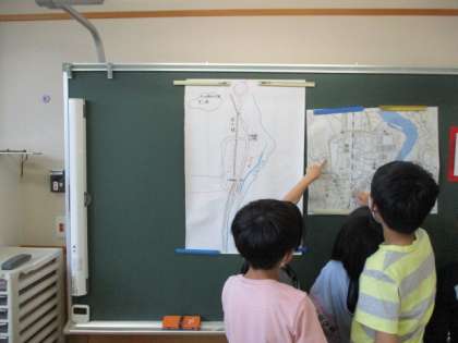 6月9日(火) 学校のまわりには 公開日 2020/06/09 更新日 2020/06/09 3年生の部屋 自分たちが作った絵地図と、先生が持ってきた地図を見比べて、違いを探しています。 知らない地図記号には、どんな意味があるのかをみんなで考えました。