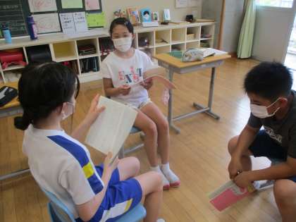 国語科の「時計の時間と心の時間」の学習の最後に、昼休みは長い方がいいか短い方がいいかについて話し合いました。その際、主張と理由、事例も挙げ、相手を説得できるように心がけて文章を考えました。昼休みは長い方がいいという意見として「自分たちの時間があればリフレッシュできる」、昼休みは短い方がいいというの意見として「短くなれば、給食の時間が増え、ゆっくりご飯を食べることができる。また、掃除の時間を増やすことができ、学校を綺麗にすることができる」等がありました。両方の意見を聞いていると、どちらとも説得力があり納得させられました。