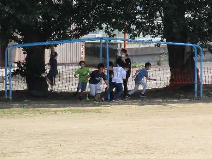 4年生は、みんなでおにごっこをしました。