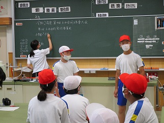 体育大会の小、中の実行委員、小学校の団役員が集まり、第1回の実行委員会が行われました。それぞれの立場で決意表明をした後、体育大会の合同テーマについて話し合いました。今日から、9月の体育大会に向け、団役員が中心となって盛り上げていってくれることを期待しています。