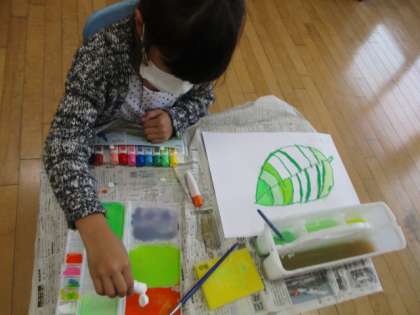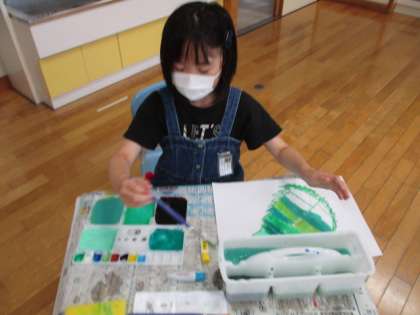 葉っぱの色をたくさん考え、いろいろな緑色を作ることができました。