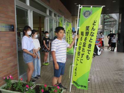 小学校と中学校合同でさわやか挨拶運動を行いました。今日は小学校の2・4・6年生が担当し、登校する児童や地域の方にさわやかな挨拶をしていました。気持ちのよい1日のスタートがきれました。