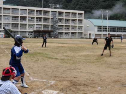 併設する楡原中学校のソフトボール部と中学校教員チームとの交流戦が行われました。