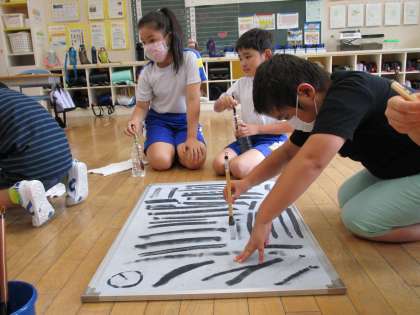 筆を立てる、穂先は10時の方向、腕を大きく動かすなど、いくつかのポイントに気を付けながら何回も練習するうちに、力強く書くことができるようになりました。