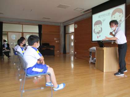 外部講師の方を招き、情報モラル講座を行いました。子供たちにとっても身近なSNSですが、光と影があるということを事例や問題をあげながら分かりやすく教えていただきました。子供たちは、星座や生年月日を教えることも個人の特定に繋がることになると知り、驚いていました。