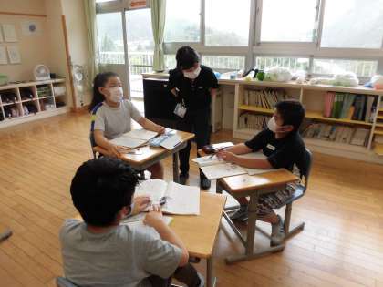 グループで話し合って、友達の考えと比べ合い、さらに考えを深めています。