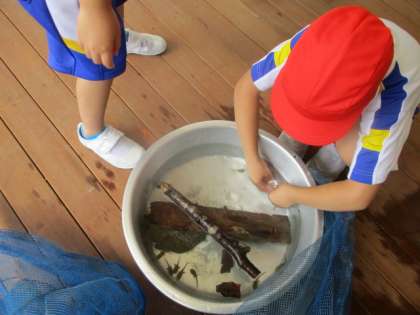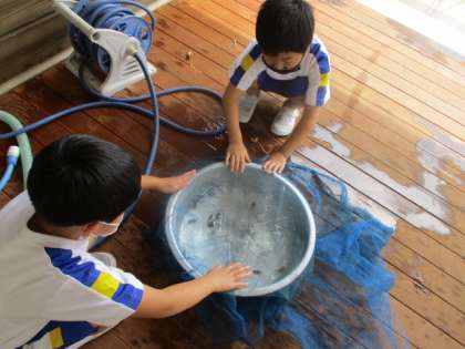 7月17日(金) 1年生 さっそくオタマジャクシのお世話をしました