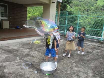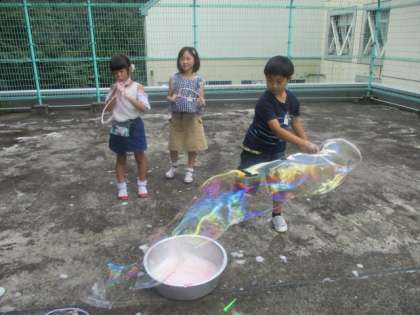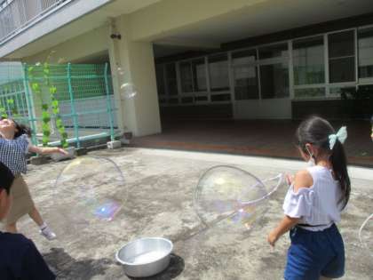 7月22日(水) 1年生 大きなシャボン玉づくり大成功