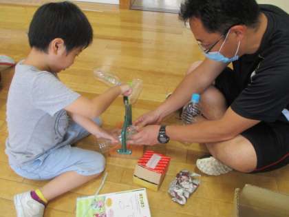 7月29日(水) 1・2年生 水鉄砲作りをしたよ