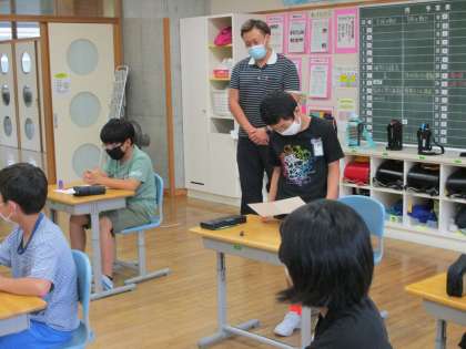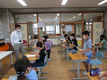 5年生の総合的な学習の時間は「福祉」について学んでいます。今日は、外部講師の方を招き、福祉とは何かを考えました。