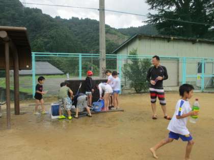 水をかけ合ったり、乾いた地面に絵を描いたりと、とても楽しい活動になりました。