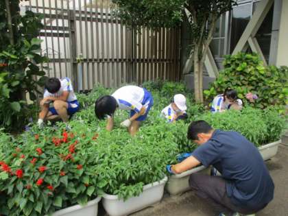 8月3日(月) 1・6年生 草むしりと花摘みをしたよ