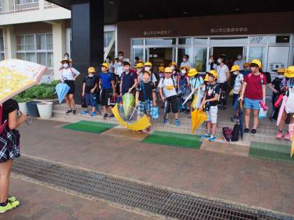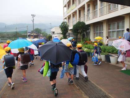 みんな、笑顔で下校しています。